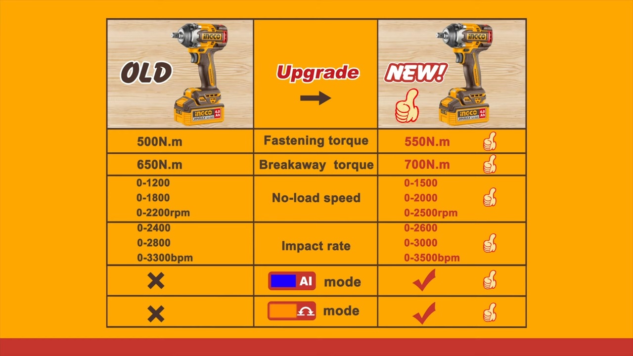 Home » Power Tools - Cordless » Bare Units » INGCO 20V BL 1/2" IMPACT WRENCH 550NM CIWLI20551 (BARE UNIT)