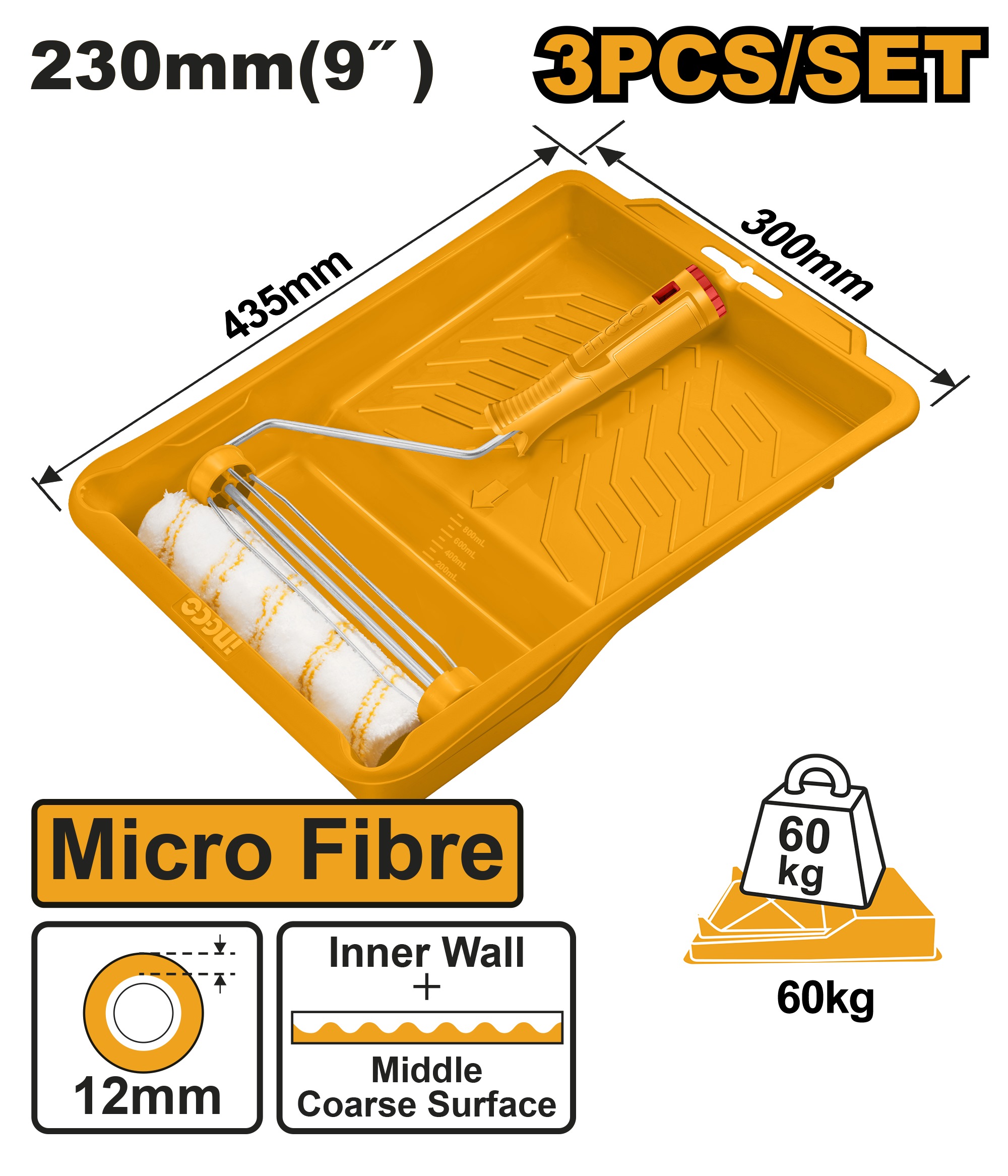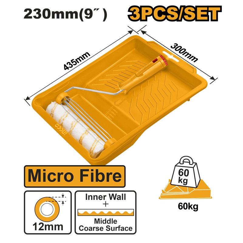 INGCO PAINT ROLLER 9" 12MM MICRO FIBRE + 10" TRAY SET HKTCB030912