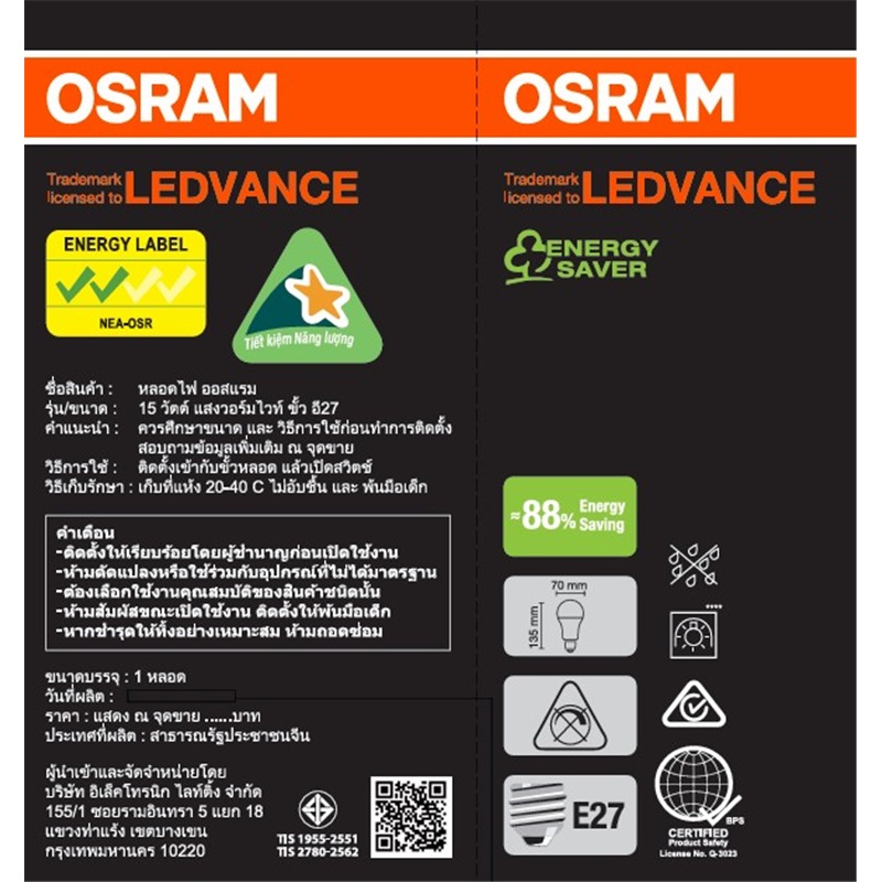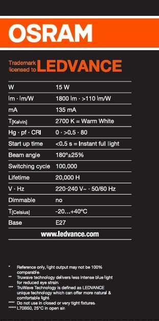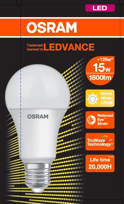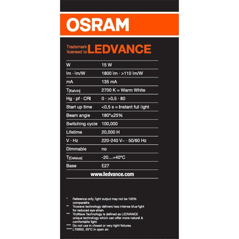 Home » Electrical & Lighting » LED Lights & Light Bulbs » OSRAM LED BULB LVCLA125 15W 230V FR E27