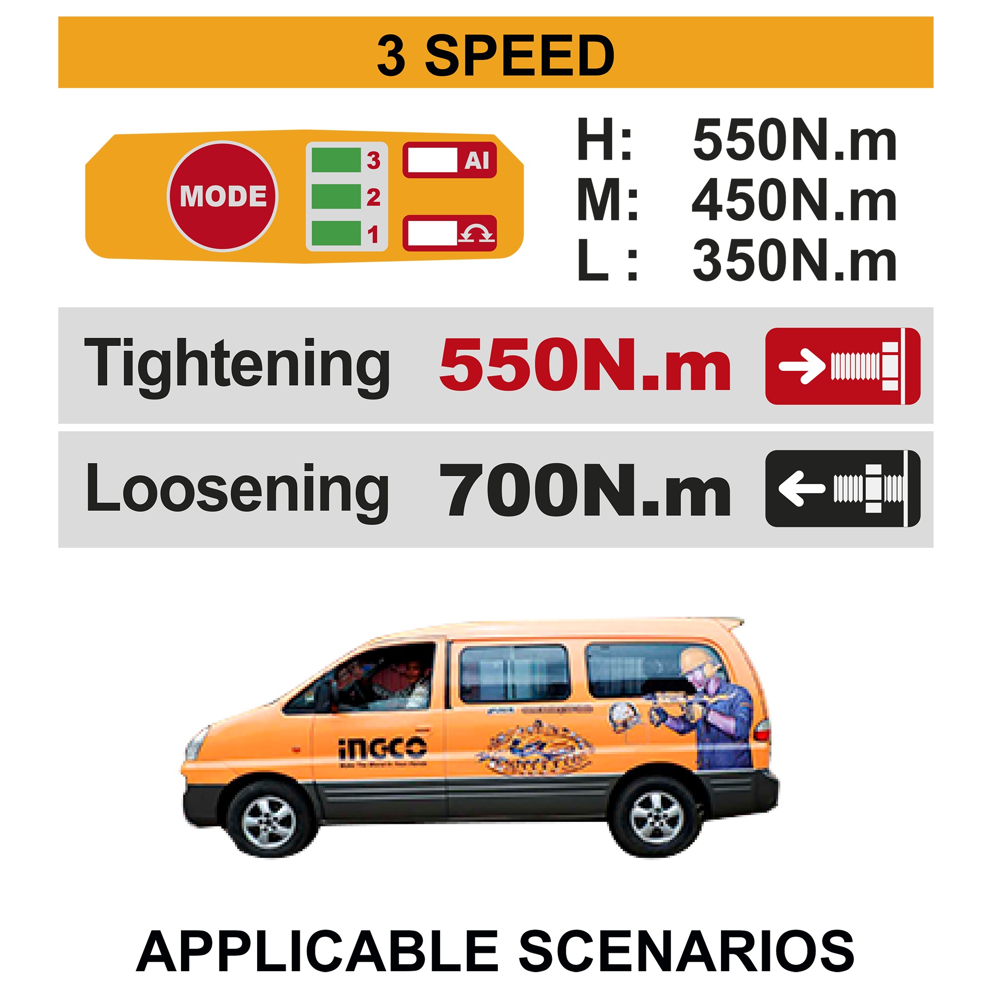 Impact rate: 0-2600/0-3000/0-3500bpm