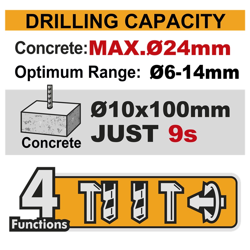INGCO 20V BL 4-MODE ROTARY HAMMER 24MMØ 2X4.0AH+BIT+CASE CRHLI202482