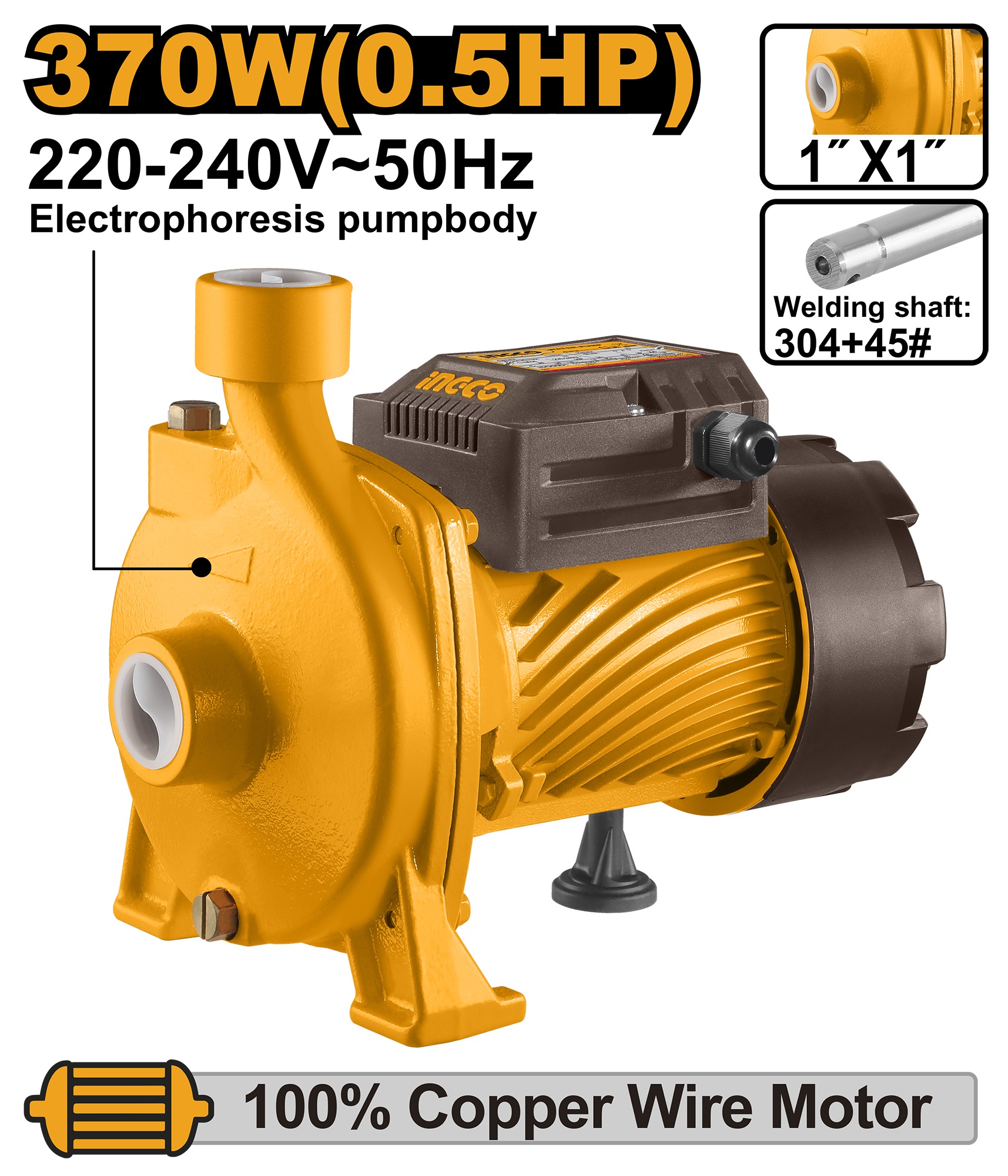 INGCO CENTRIFUGAL PUMP 370W 1" X 1" MAX HEAD 22M MAX FLOW 90L/MIN CPM37068