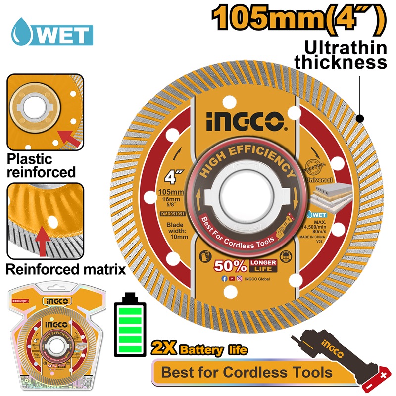 INGCO 4" 105MM ULTRATHIN DIMAOND WHEEL WITH FLANGE DMD051051