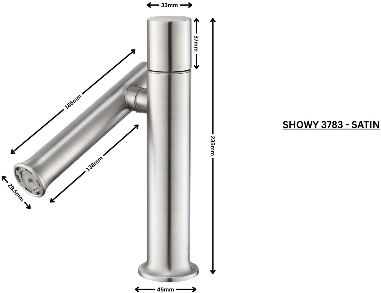 Home » Bathroom & Kitchen » Bathroom & Kitchen Faucets » SHOWY SATIN 304 S/STEEL BASIN MIXER WITH VERTICAL SWIVEL SPOUT 3783