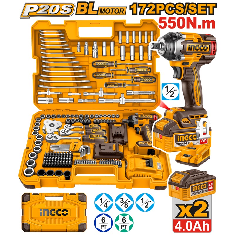 INGCO 20V IMPACT WRENCH 550NM IN 172PCS TOOL KIT SET HKTHP41723