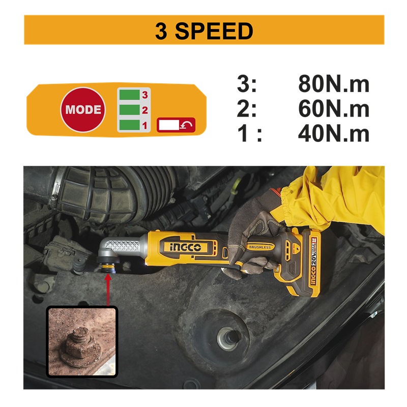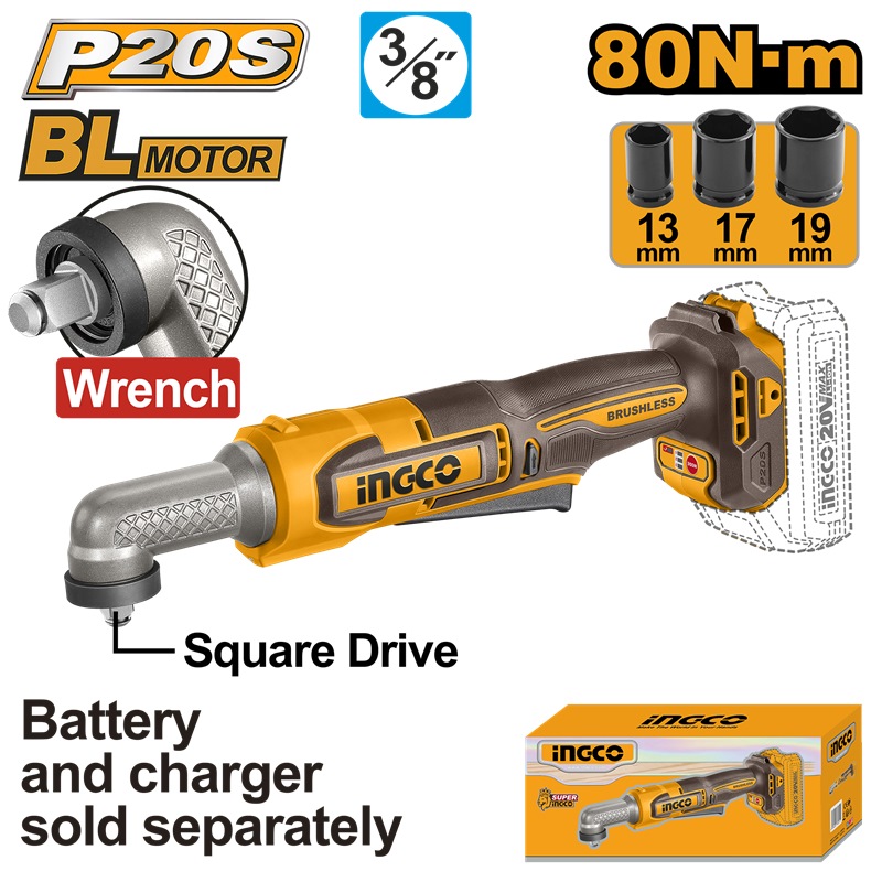 INGCO 20V 3/8" ANGLE IMPACT WRENCH 80NM CAIWLI2081 (BARE UNIT)