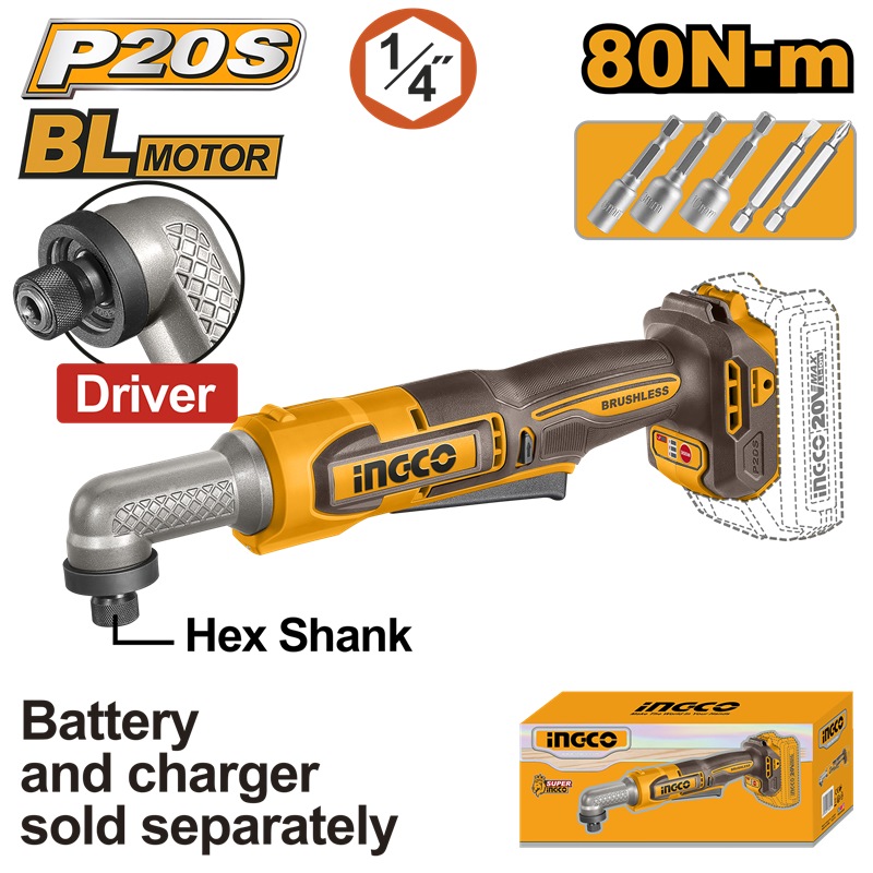 INGCO 20V 1/4" ANGLE IMPACT DRIVER 80NM CAIRLI2081 (BARE UNIT)