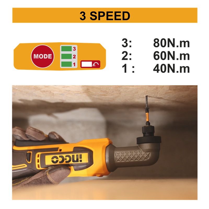 Home » Power Tools - Cordless » Bare Units » INGCO 20V 1/4" ANGLE IMPACT DRIVER 80NM CAIRLI2081 (BARE UNIT)