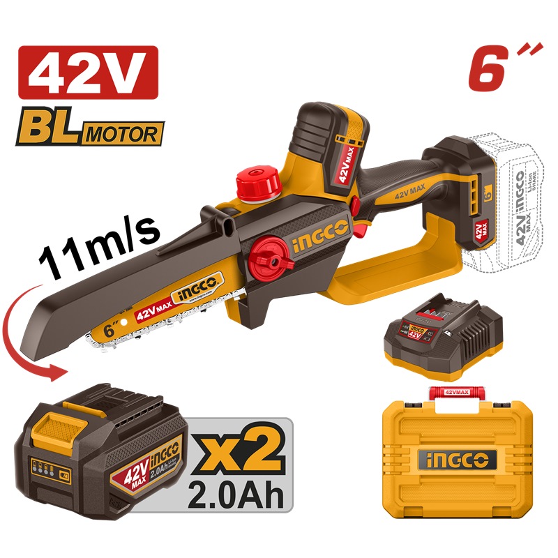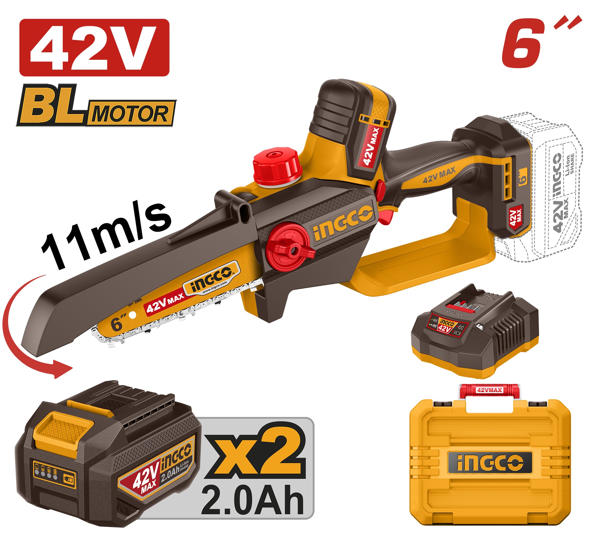 INGCO 42V BL 6" CORDLESS PURNING SAW 2X2.0AH+CASE CGSLI42681