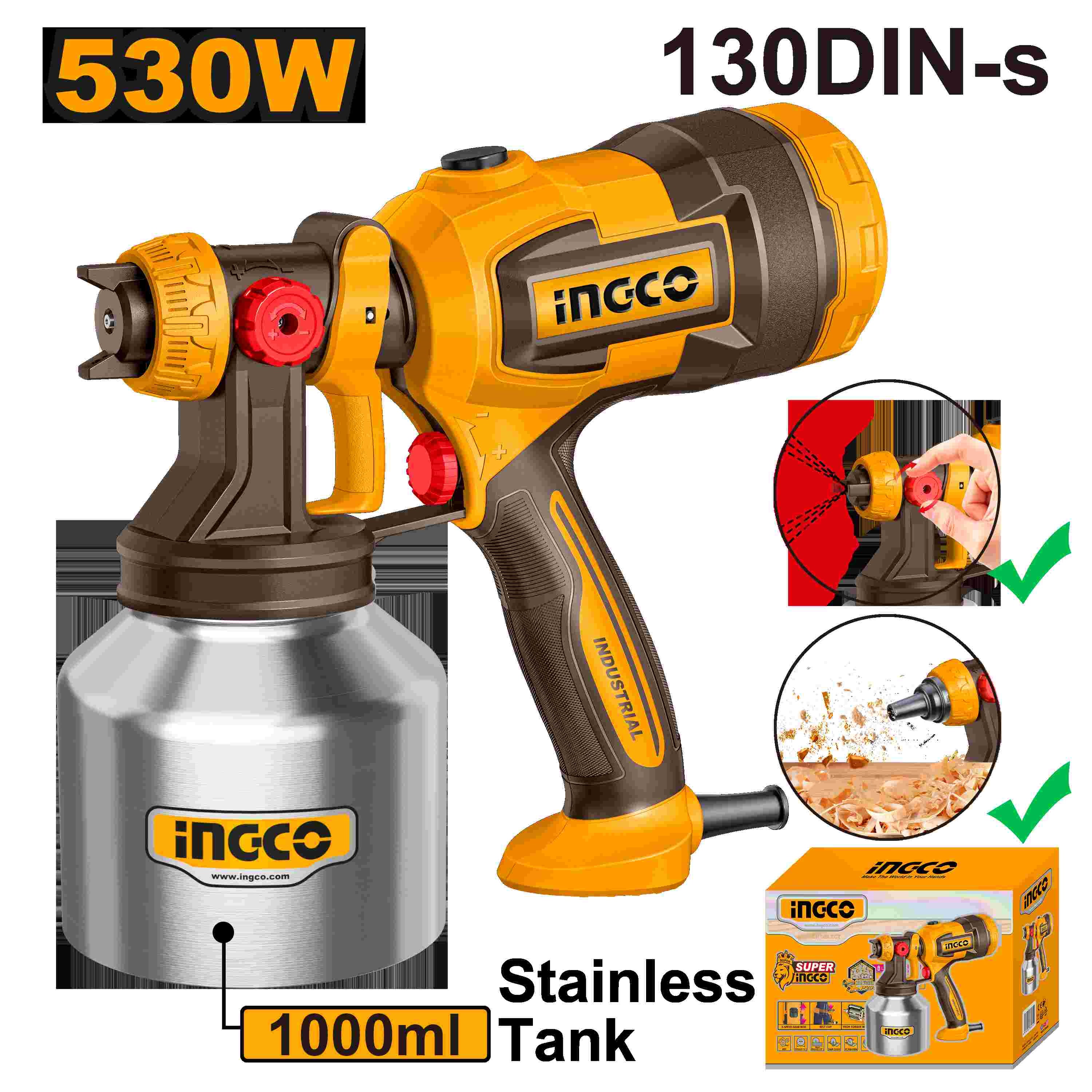 INGCO ELECTRIC SPRAY GUN 530W 1000ML STAINLESS STEEL TANK SPG45061