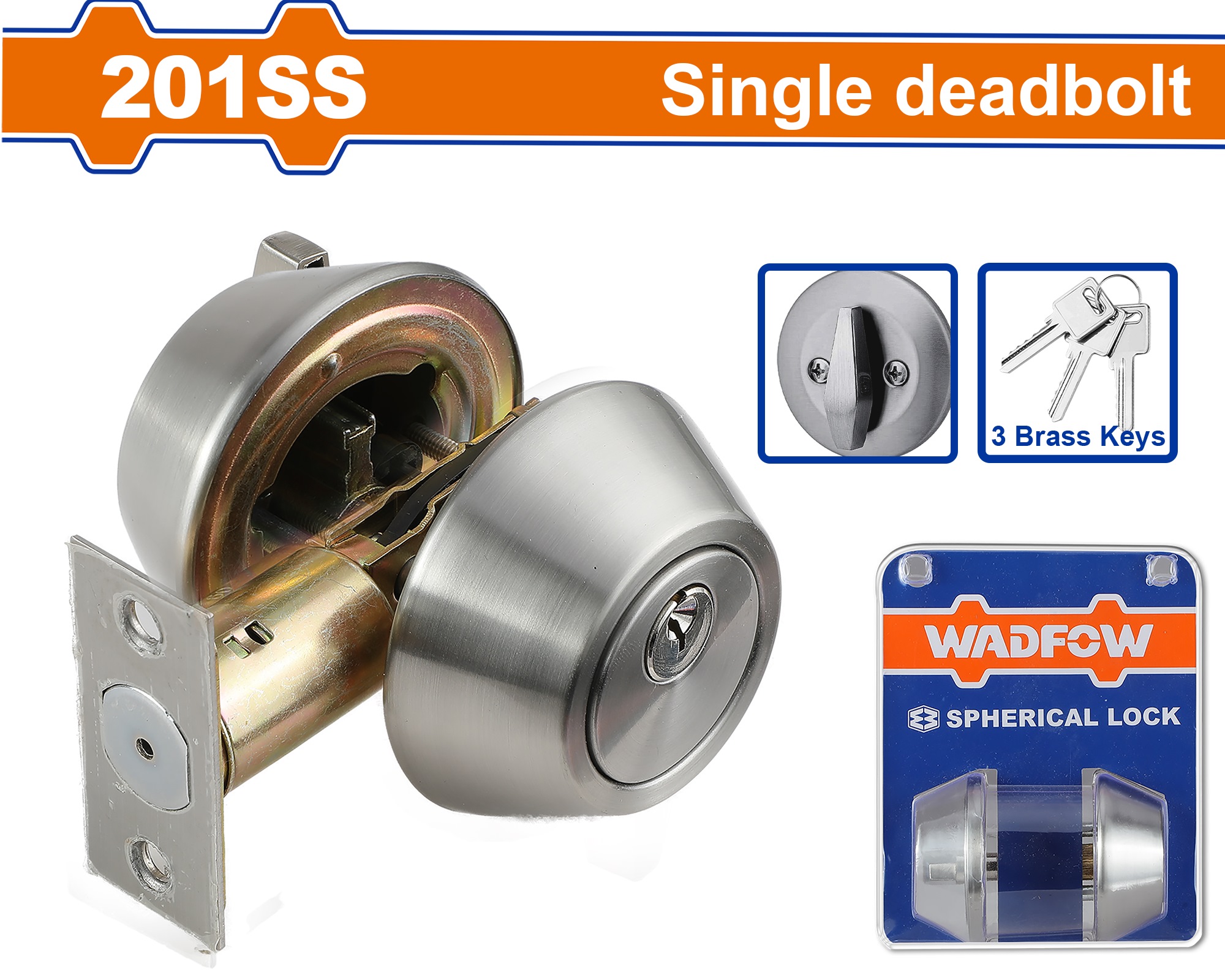 Home » Locks & Security » Door Hardware & Locks » WADFOW SINGLE CYCLINDER DEADBOLT SS WUE1501