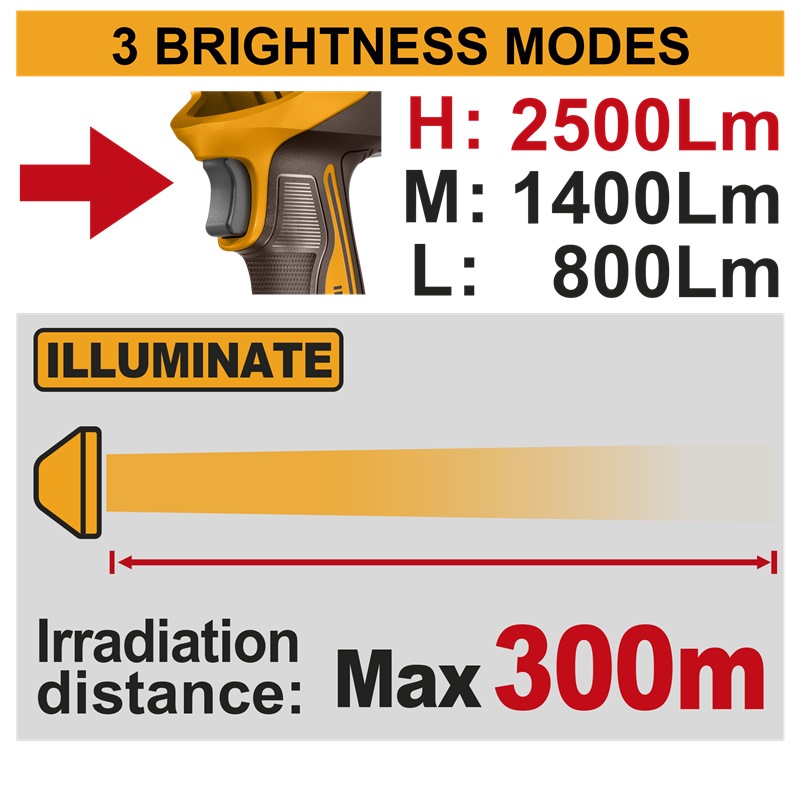Lumens:High:2500±10% Medium:1400±10% Low:800±10%