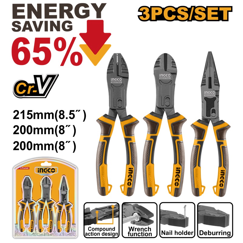 Home » Hand Tools » Pliers » INGCO 3PCS COMPOUND ACTION PLIER SET HKCPS5831