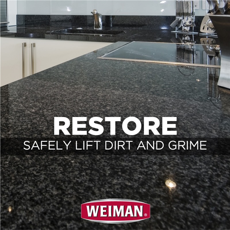 Weiman Granite Cleaner & Polish safely removes grease, grime and surface stains while visibly reducing surface scratches. It reverses dullness, revealing natural colors and veining.