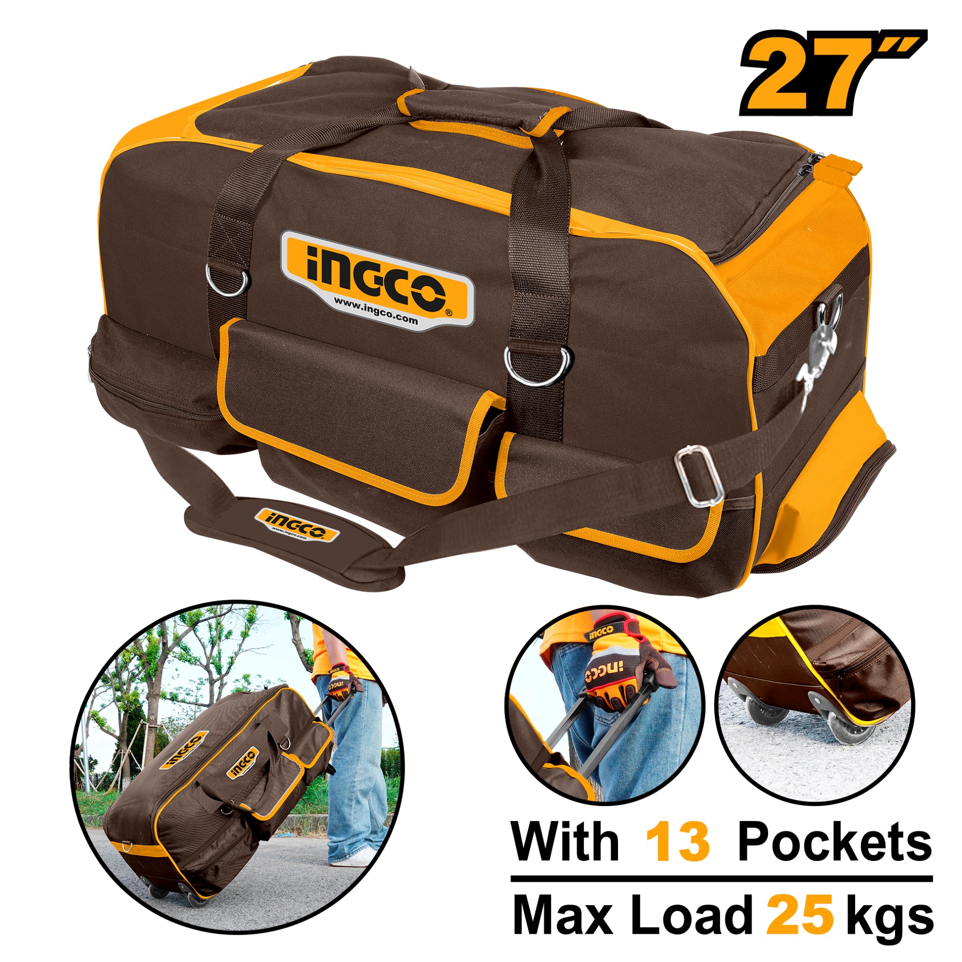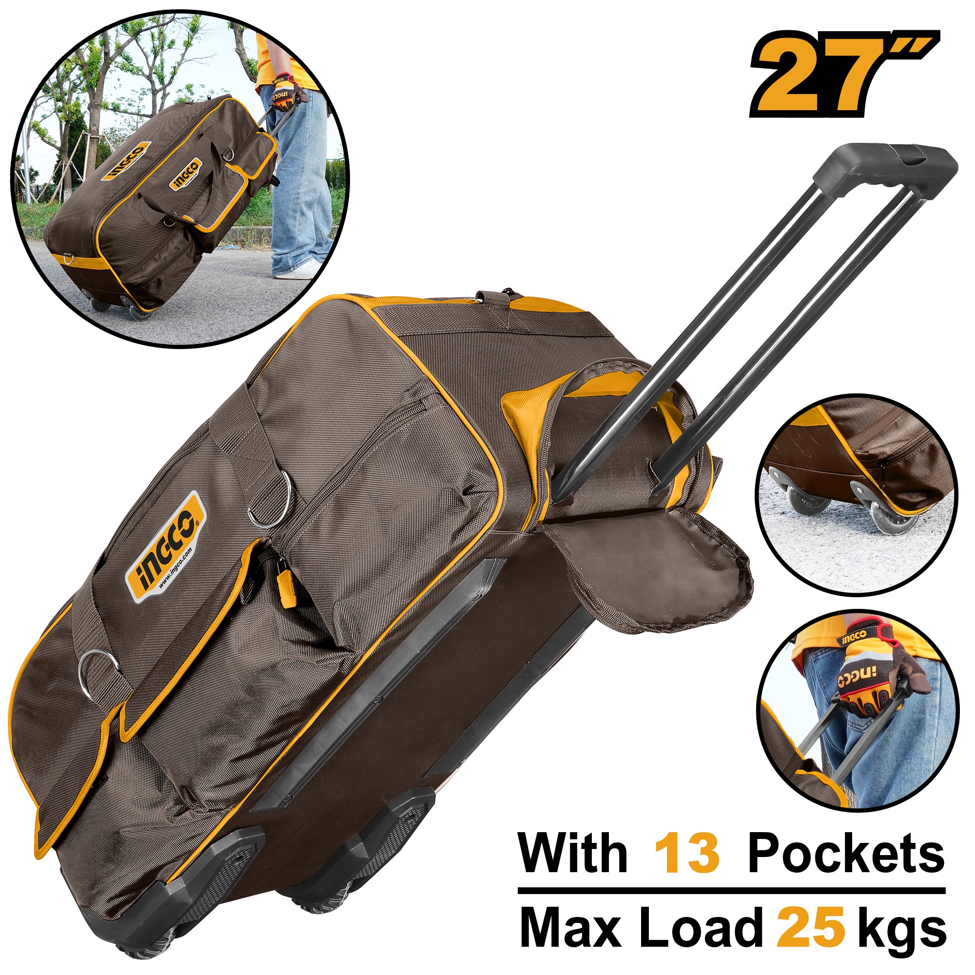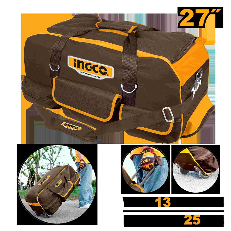 INGCO 27" TELESCOPIC PULL HANDLE WHEELED TOOL BAG 685X295X320MM HRRTB2715