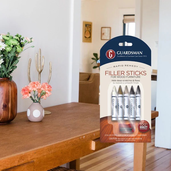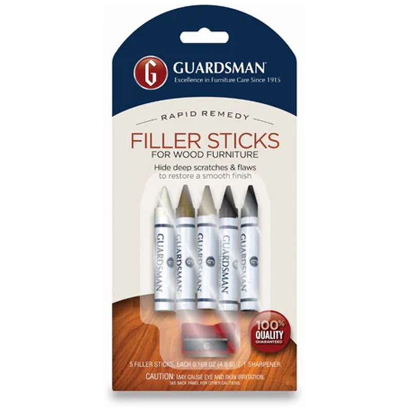 Guardsman Wood Repair Filler Sticks are the perfect way repair scratches, worn edges, and gouges that have damaged your wood furniture beyond the finish. The filler sticks for wood furniture are made of wood putty, a substance that blends in with the wood and doesn't rub off on your clothing.