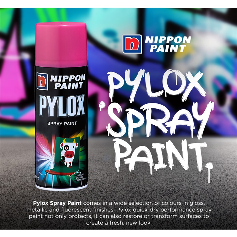 Nippon Pylox is a quick-dry, high-performance versatile spray paint that can be used on a wide range of interior and exterior substates.