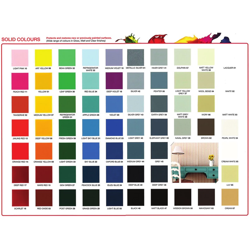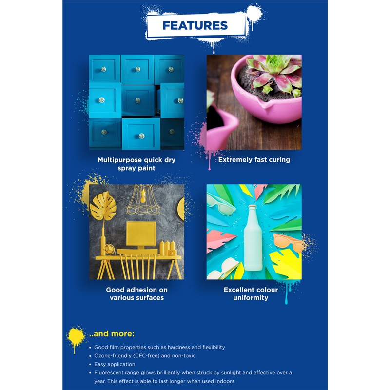 Colours available: Nippon Paint Pylox Fluorescent, Nippon Paint Pylox Metallic, Nippon Paint Pylox Special Uses