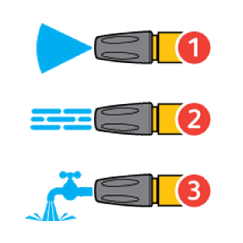 Three spray patterns : Powerful jet for cleaning, Fast Fill for filling buckets and watering cans, mist for gently watering seedlings