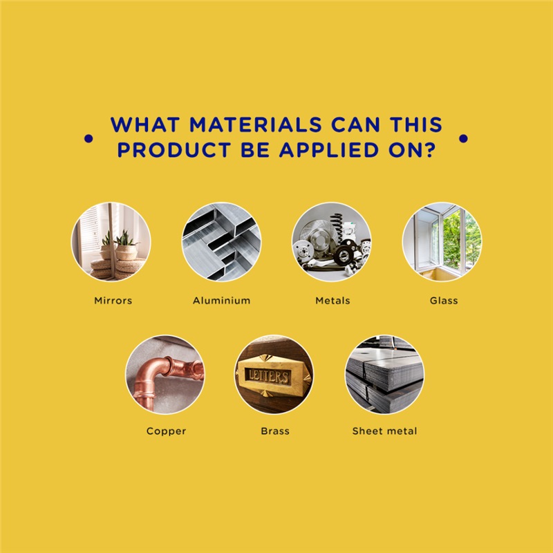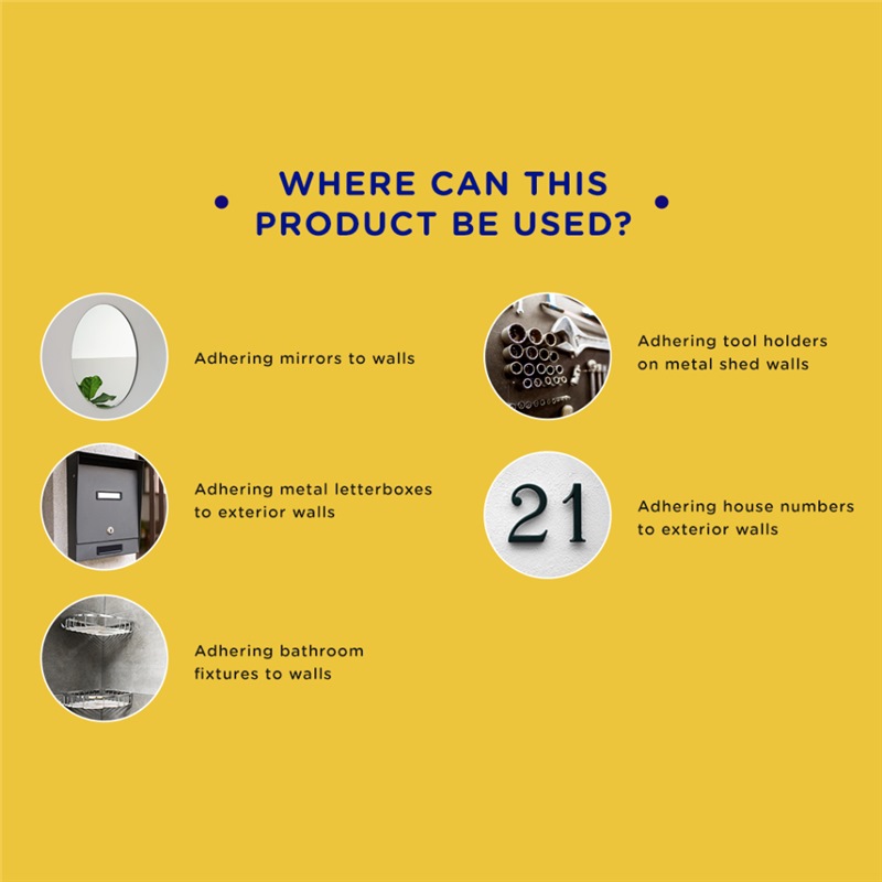 • Adheres to metal, glass, mirror as well as most surfaces including painted surfaces but not wall coverings