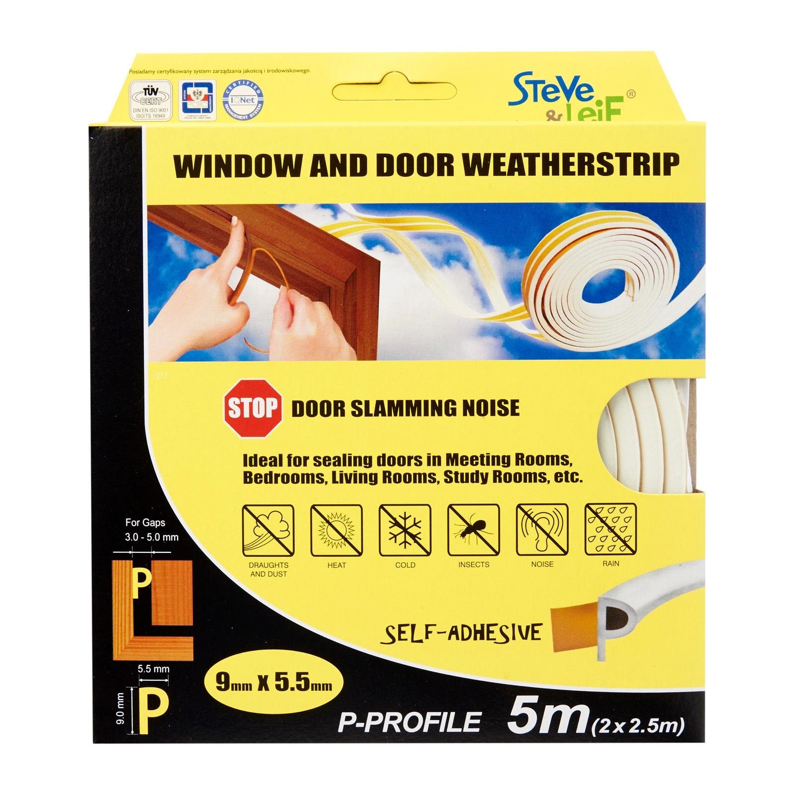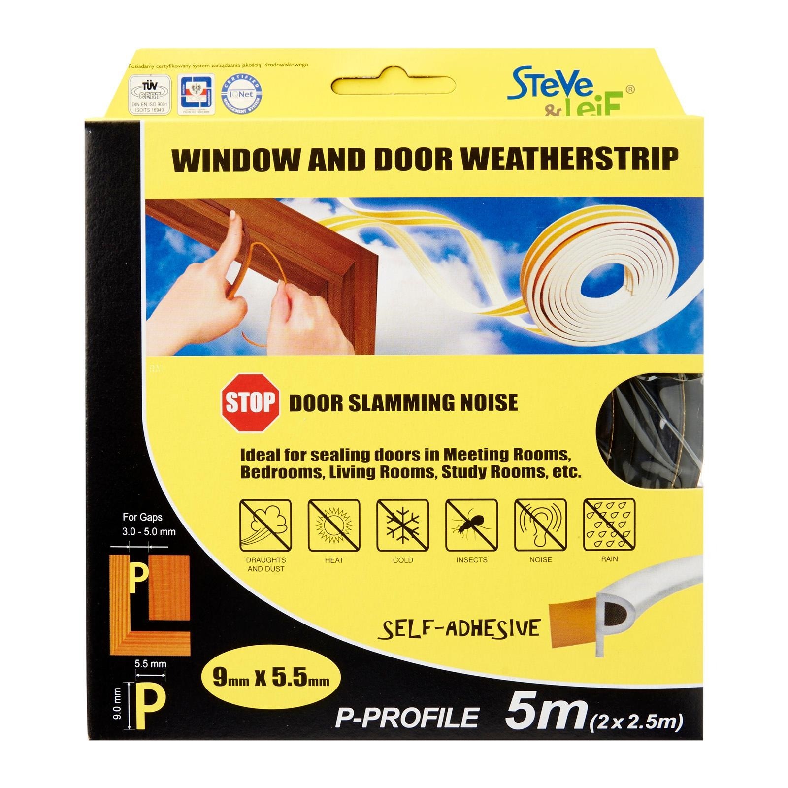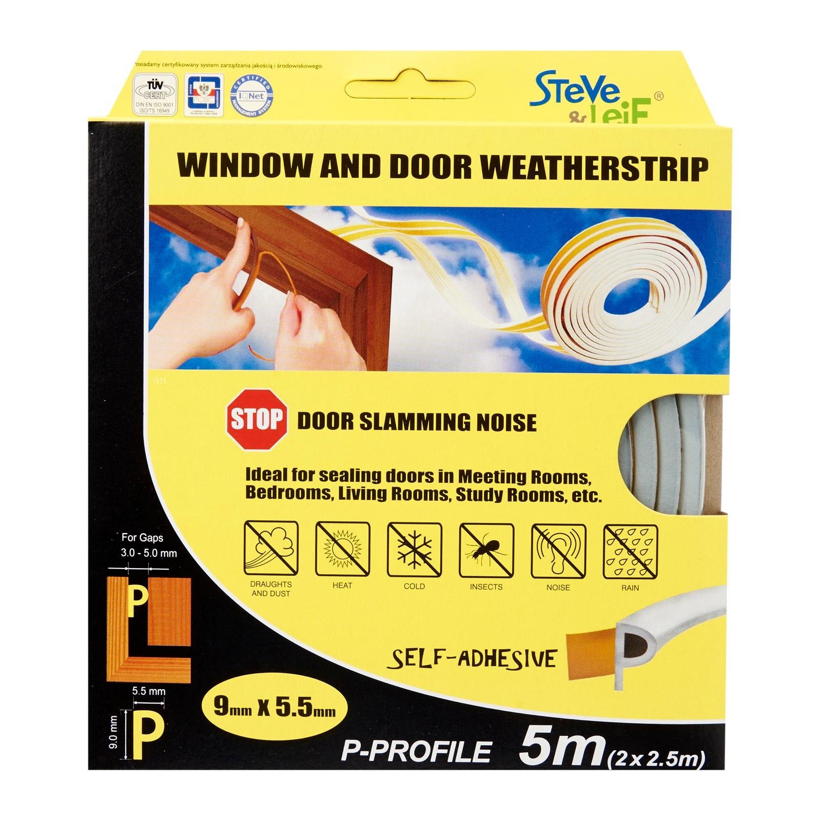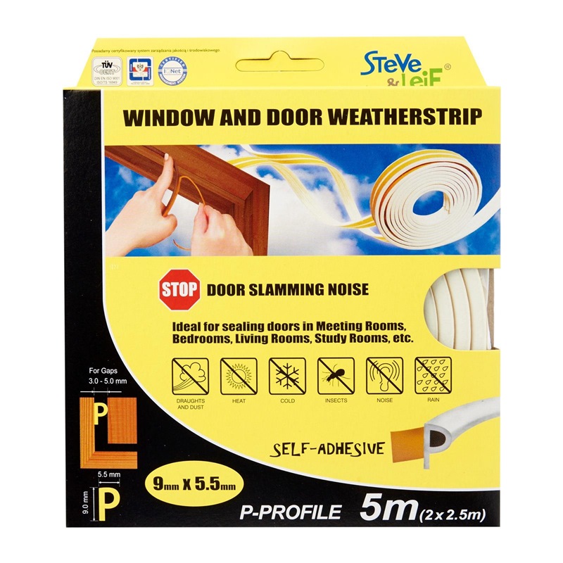 Steve & Leif's P-Profile Weather Strip made of cellular foam (sponge) EPDM rubber that has excellent resistance to ozone, oxidants and severe weather conditions. EPDM is commonly used sealing material for windows and doors. Ideal for sealing doors in Bedrooms, living rooms, study rooms, meeting rooms, etc. for cushioning effect when closing. Available in Black, Brown, Grey and White to match your home interior design.