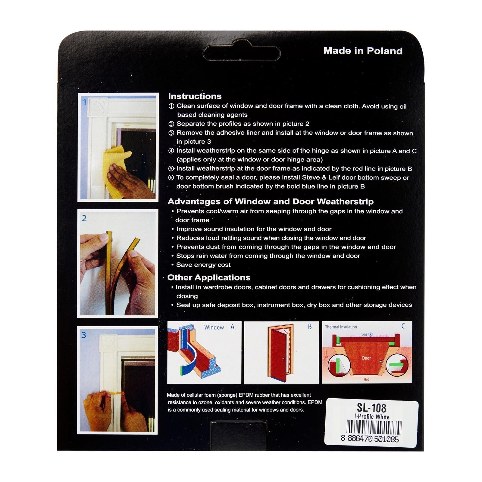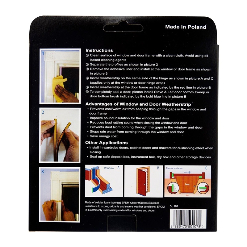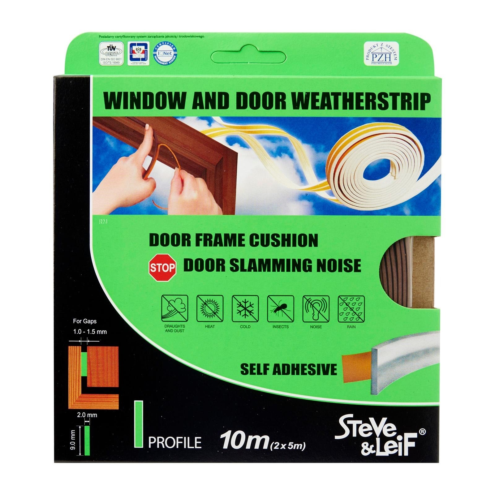 Steve & Leif's I-Profile Weather Strip made of cellular foam (sponge) EPDM rubber that has excellent resistance to ozone, oxidants and severe weather conditions. EPDM is commonly used sealing material for windows and doors. Ideal for sealing doors in Bedrooms, living rooms, study rooms, meeting rooms, etc. for cushioning effect when closing. Available in Brown, White and Black to match your home interior design.