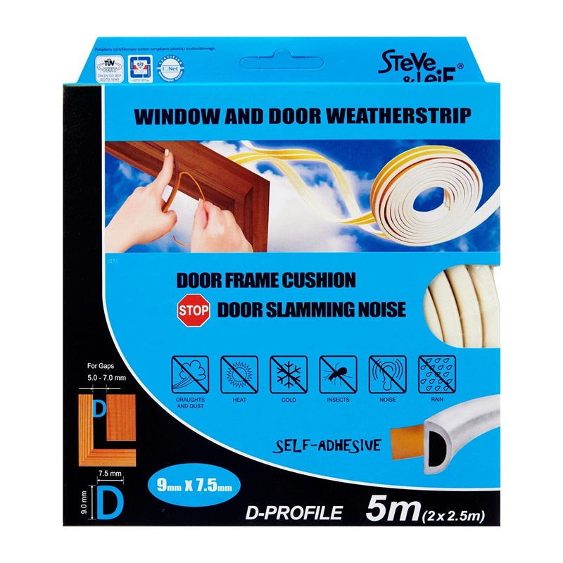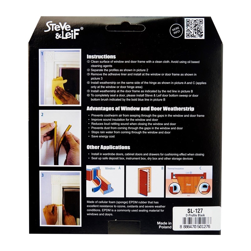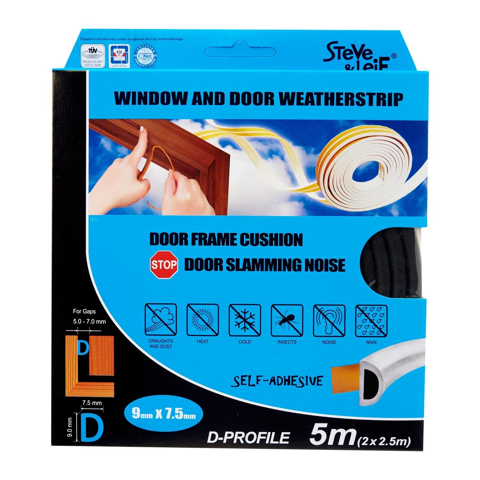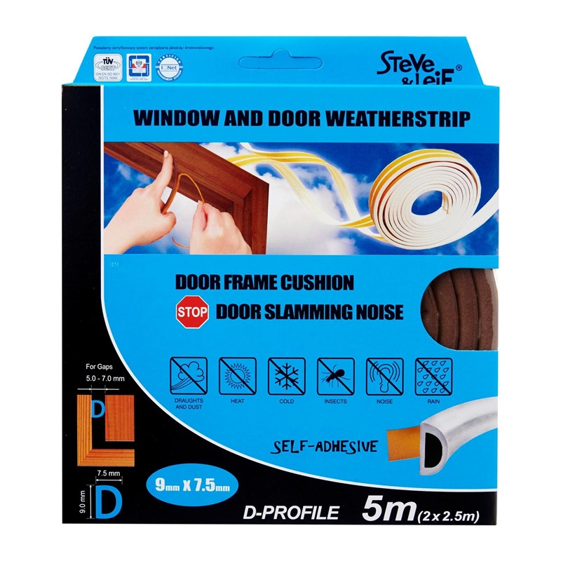 Steve & Leif's D-Profile Weather Strip made of cellular foam (sponge) EPDM rubber that has excellent resistance to ozone, oxidants and severe weather conditions. EPDM is commonly used sealing material for windows and doors. Ideal for sealing doors in Bedrooms, living rooms, study rooms, meeting rooms, etc. for cushioning effect when closing. Available in Black, Brown, Grey and White to match your home interior design.