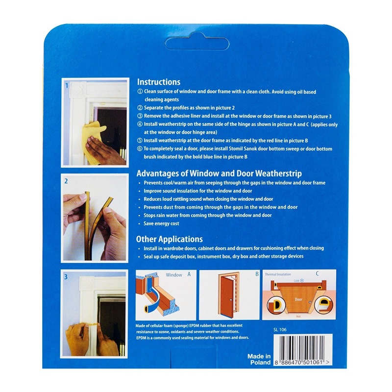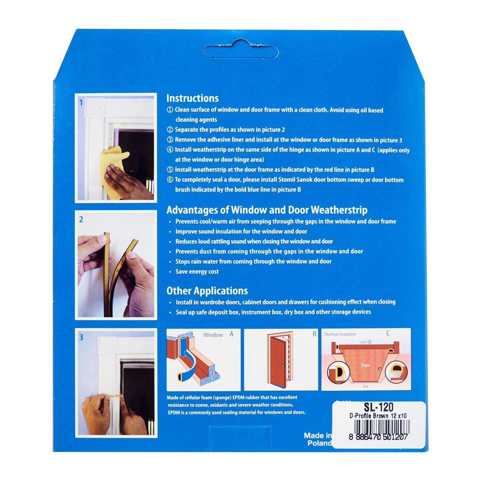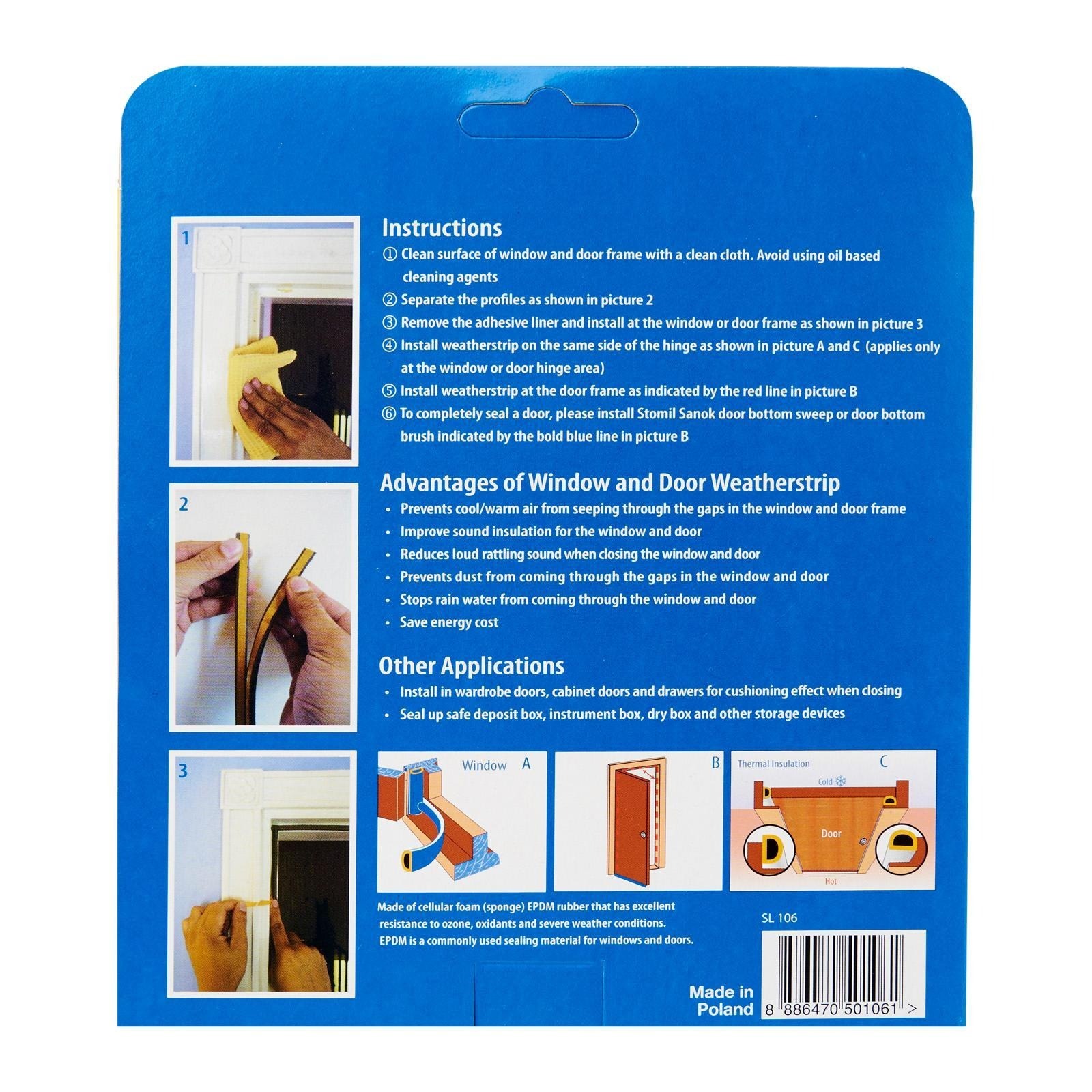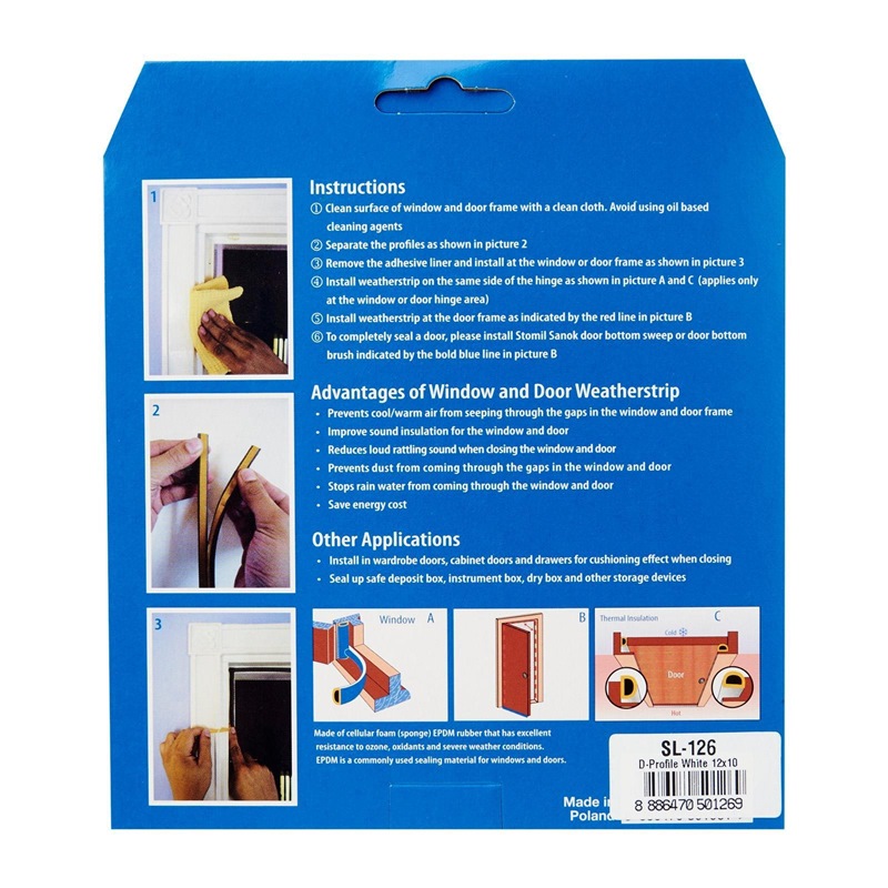 Steve & Leif's Big D-Profile Weather Strip made of cellular foam (sponge) EPDM rubber that has excellent resistance to ozone, oxidants and severe weather conditions. EPDM is commonly used sealing material for windows and doors. Ideal for sealing doors in Bedrooms, living rooms, study rooms, meeting rooms, etc. for cushioning effect when closing. Available in Black, Brown and White to match your home interior design.