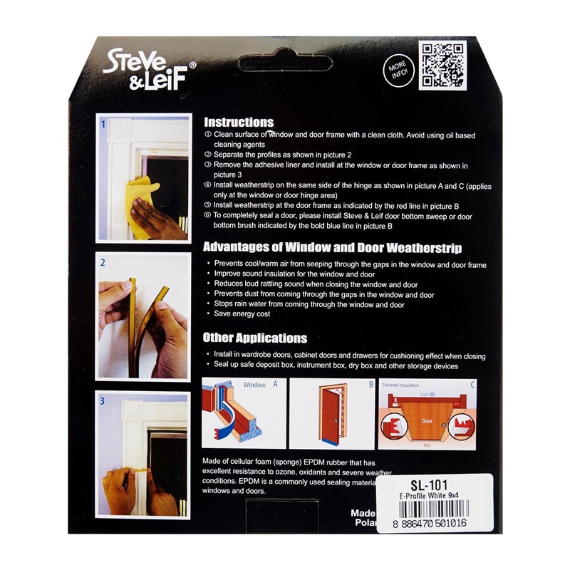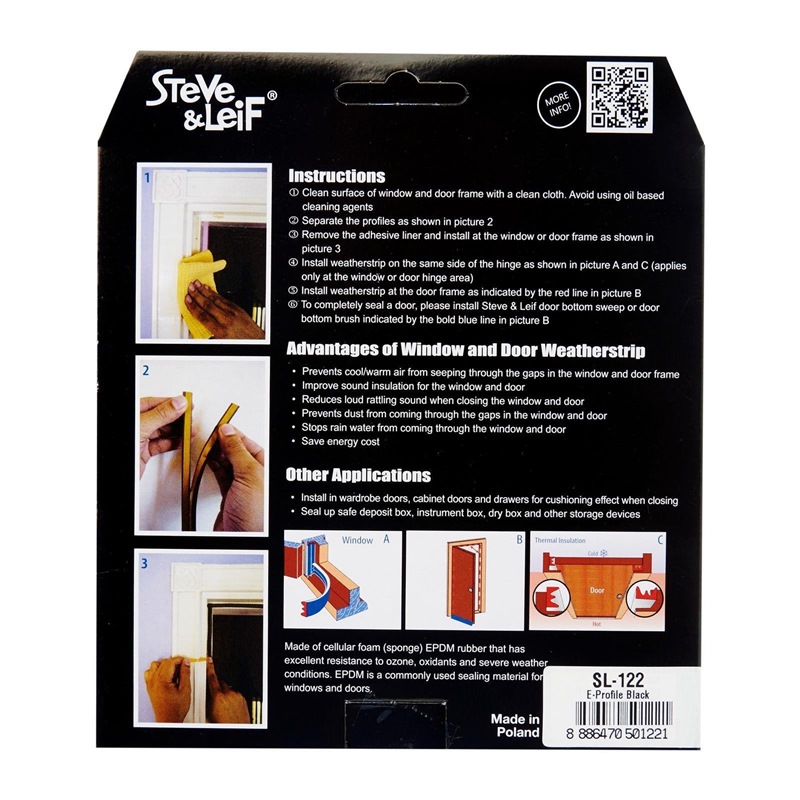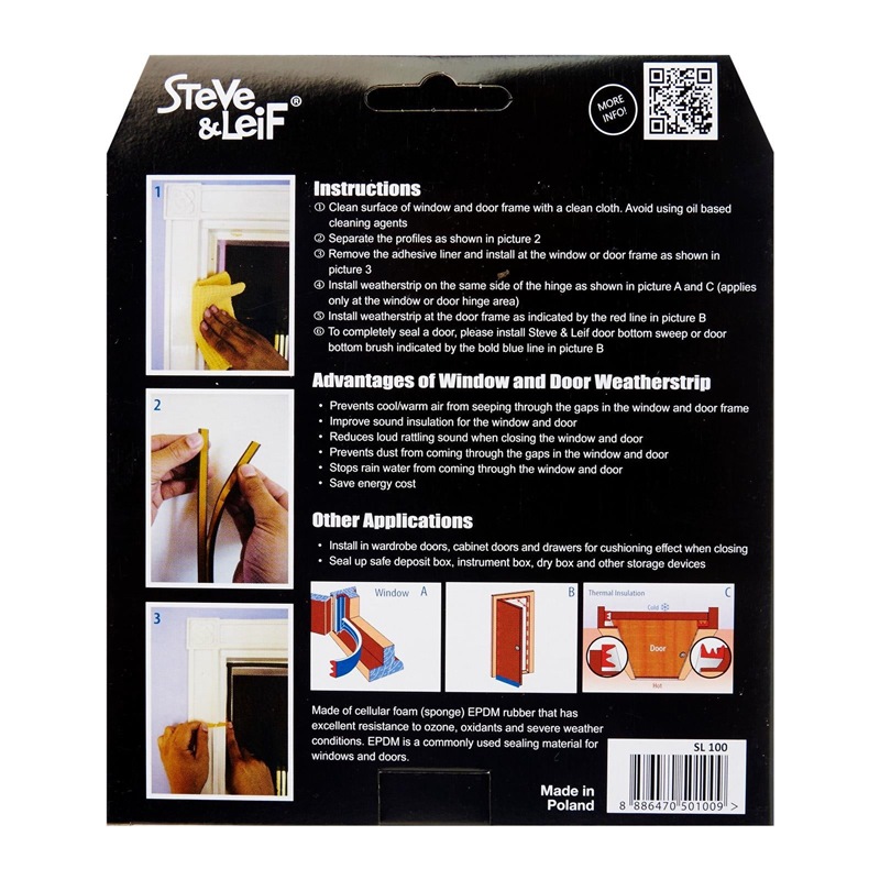 Steve & Leif's E-profile Weather Strip made of cellular foam (sponge) EPDM rubber that has excellent resistance to ozone, oxidants and severe weather conditions. EPDM is commonly used sealing material for windows and doors. Ideal for sealing doors in Bedrooms, living rooms, study rooms, meeting rooms, etc. for cushioning effect when closing. Available inBlack, Brown, Grey and Whiteto match your home interior design.