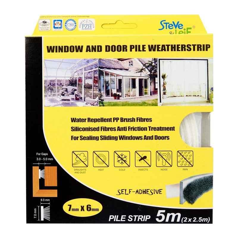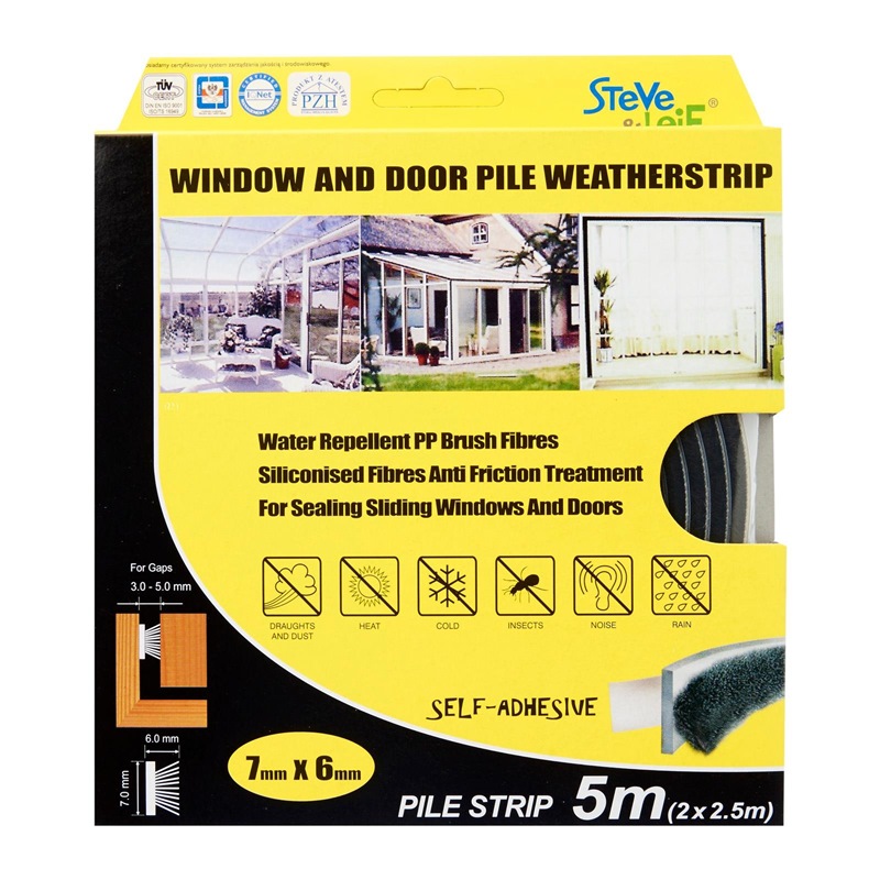 Steve & Leif's Pile Weather Strip made of water repellent PP brush fibre and siliconised fibres anti-friction treatment. Pile weather strip is commonly used sealing sliding windows and doors. Ideal for sealing doors in Bedrooms, living rooms, study rooms, meeting rooms, etc. for cushioning effect when closing. Available in Grey, Dark Brown, Black, Beige and White to match your home interior design.