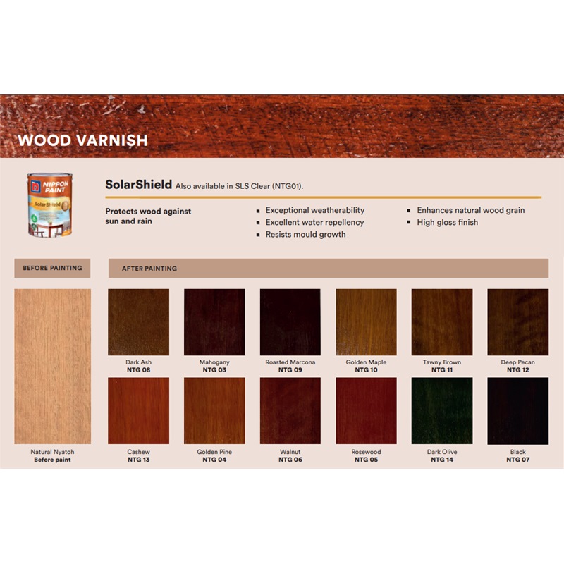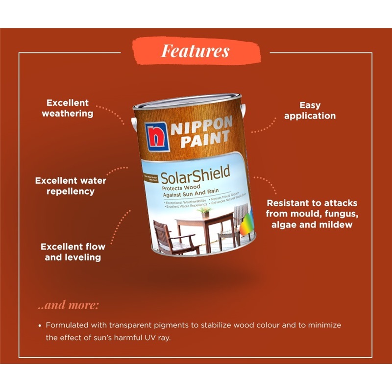 Home » Paint & Painting Supplies » Wood & Metal Paints » NIPPON SOLARSHIELD 5L VARNISH FOR EXTERIOR WOOD