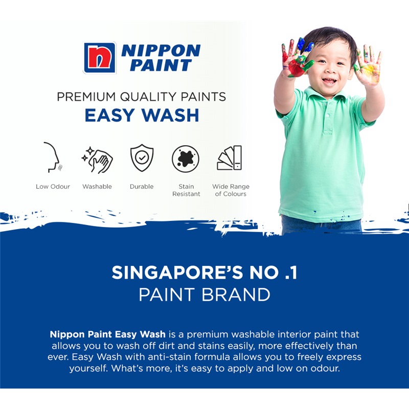 Nippon Paint Easy Wash premium washable paint is a premium acrylic paint specially formulated for ultimate washability and resistance to common household stains.