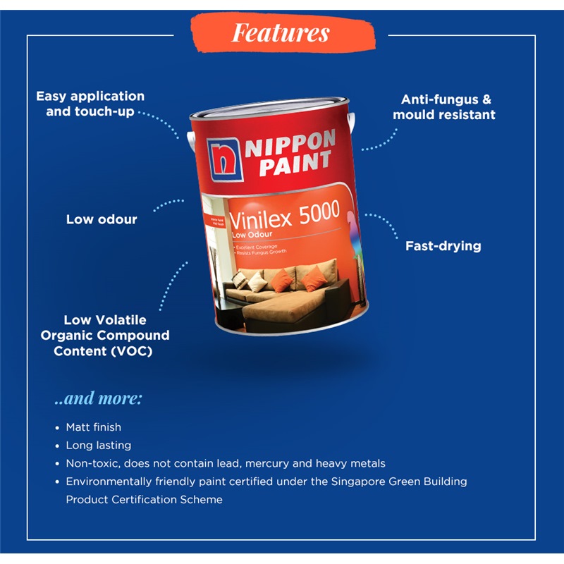 5 Litre & 20 Litre can available: Nippon Paint Vinilex 5000 5L, Nippon Paint Vinilex 5000 20L