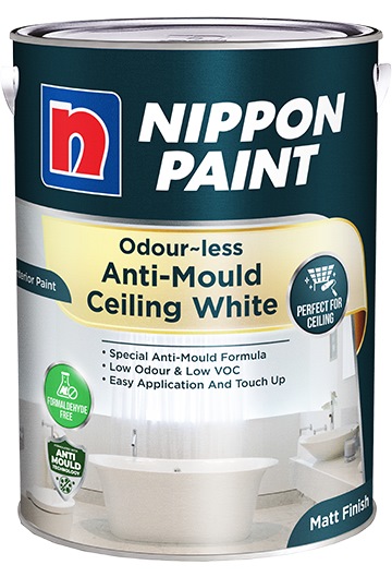 Nippon Paint Odour~less Anti-Mould Ceiling White is an environmentally favorable green product formulated with anti-mould properties, giving protection against most species of mould.