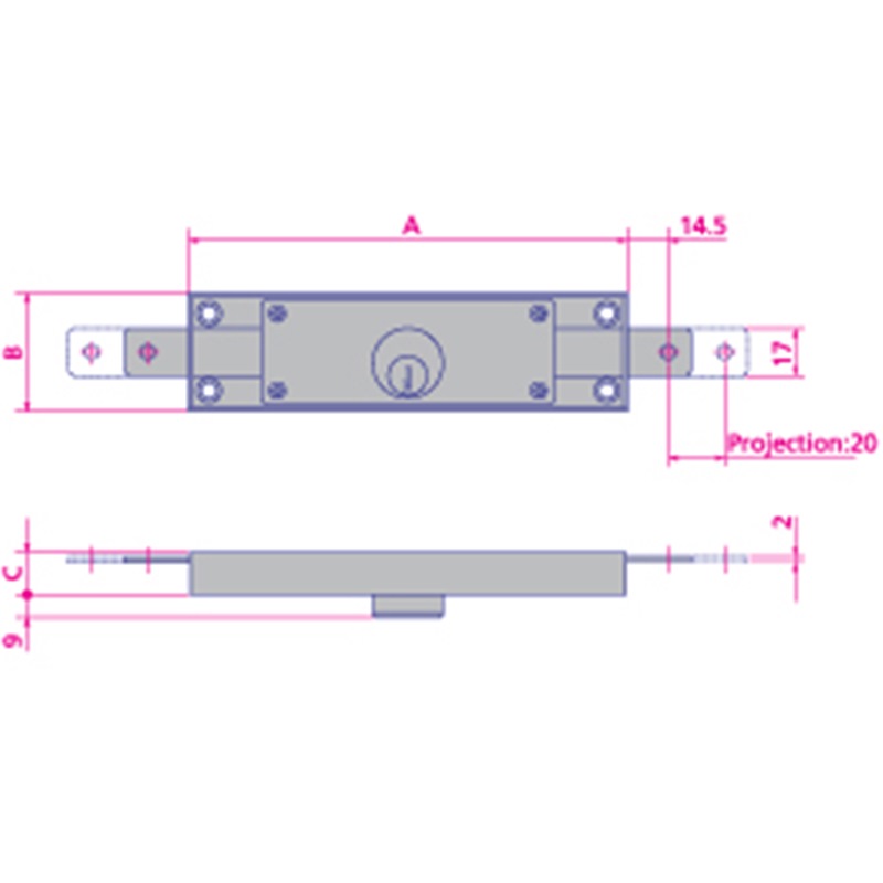 Deadbolts: 2mm thick steel. Projection 24.0mm