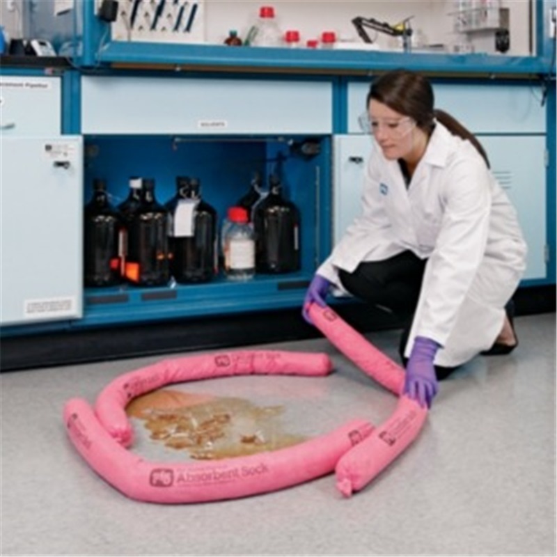 Absorbs acids, bases, corrosives, chemicals and unknown liquids, even those with high concentrations like 98% sulfuric acid and 30% sodium hydroxide.