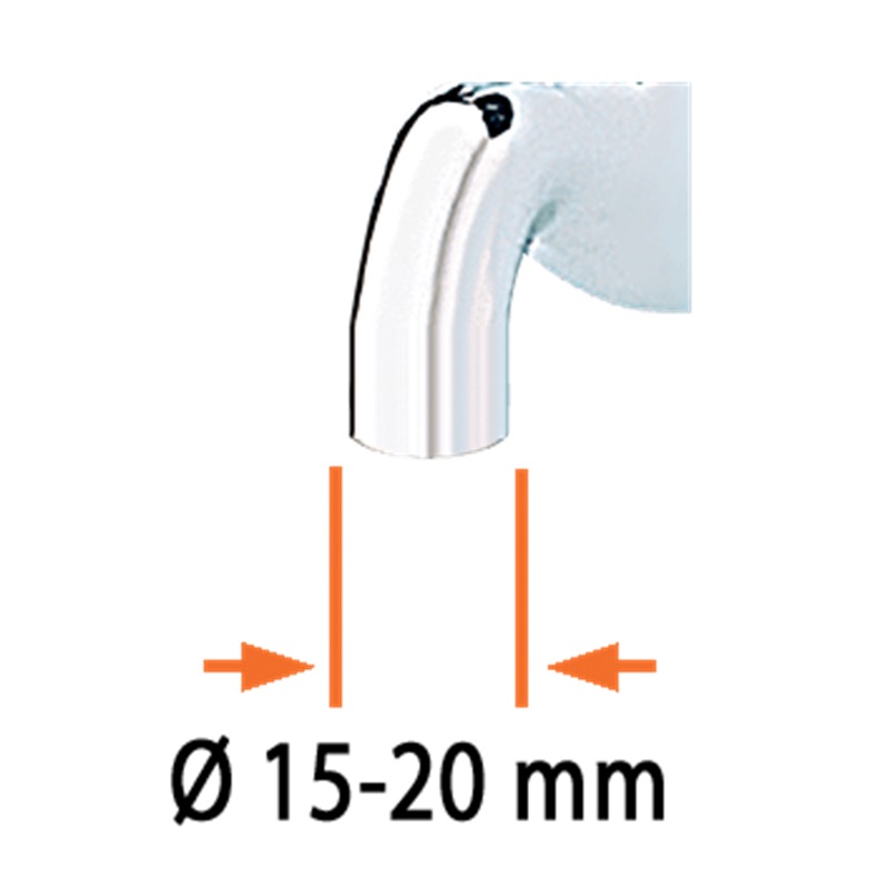 For taps with round spouts (ext. Ø min. 15 max. 20 mm).