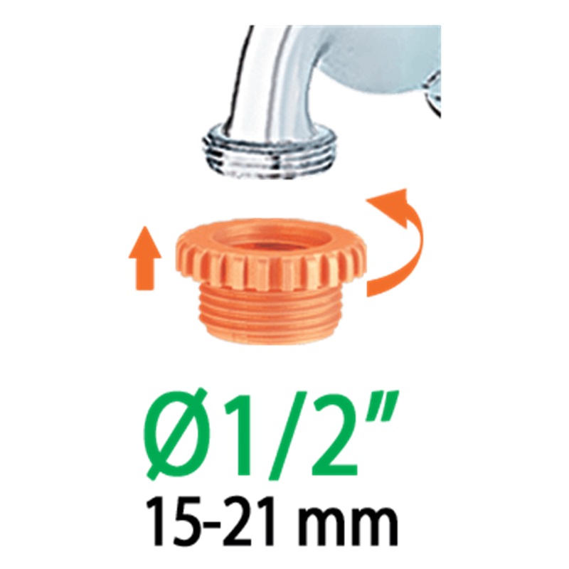 Contains: tap connector 3/4 inch and reducer 3/4 inch-1/2inch - automatic couplings (1/2inch) with and without aquastop - jet spray nozzle.