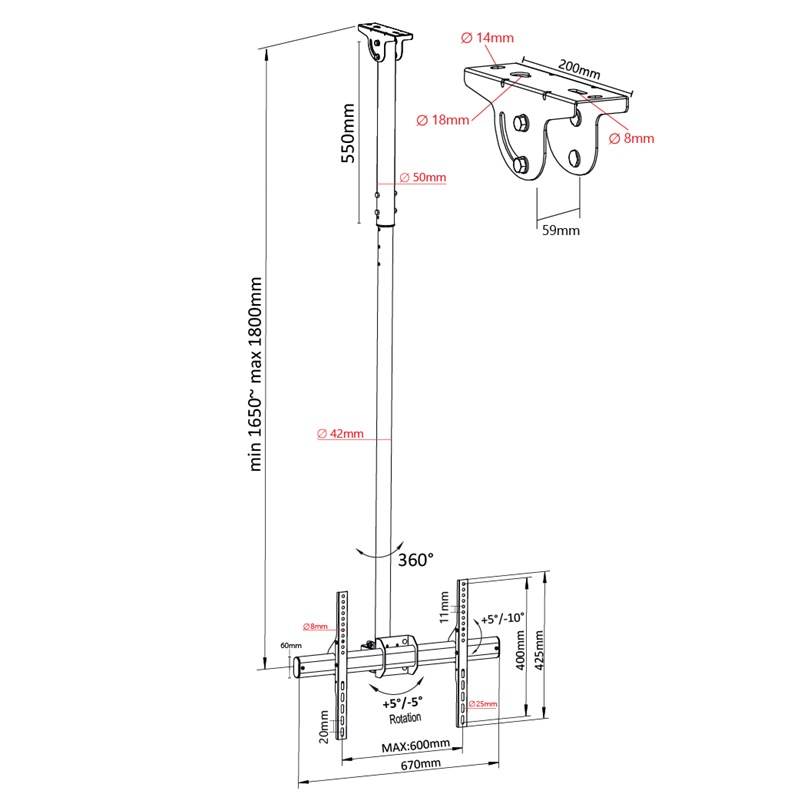 Home » Household Products » TV Mounts & TV Stands » TITAN TV CEILING MOUNT 37 - 70"/50KG SGB666A