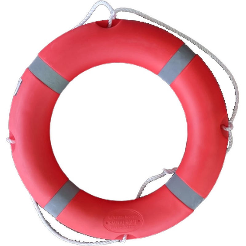 Life saving buoy designed to be thrown to a person in the water, to provide buoyancy and prevent drowning.