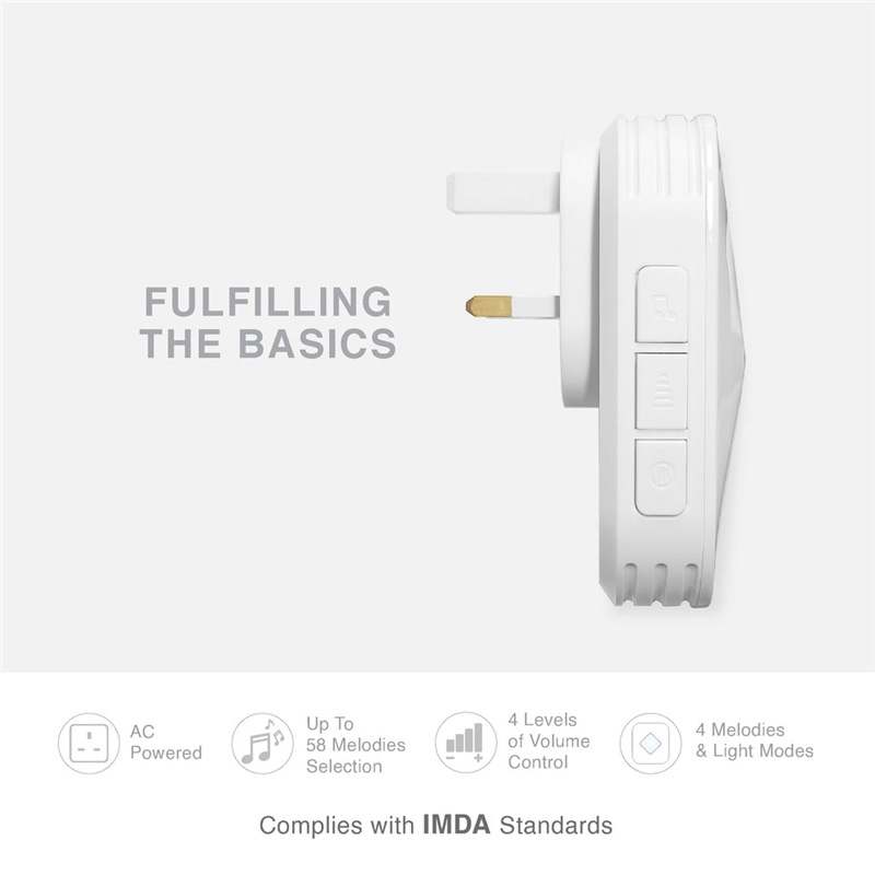 4 Melody And Lights Modes - Ringing + Flashing Light, Ringing Only, Flashing Light Only, Ringing + Light Fully Lit Up All The Time(Can Act As Night Light)