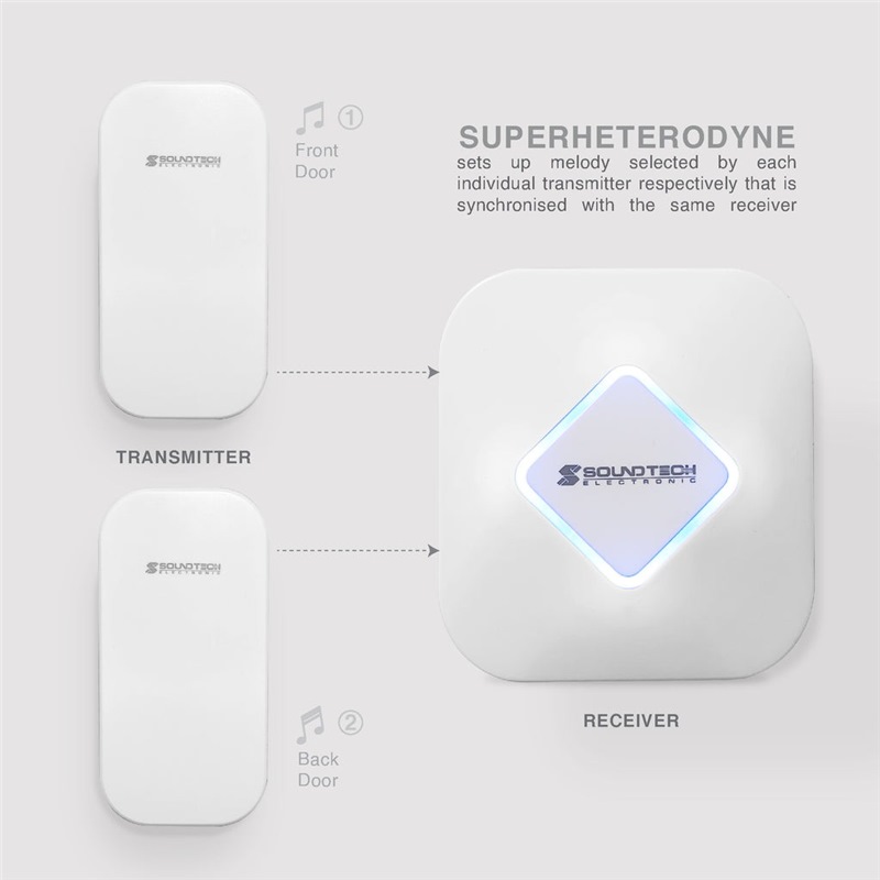 Home » Electrical & Lighting » Doorbells » SOUNDTECH KINETIC WIRELESS DIGITAL DOORBELL W/NIGHT LIGHT DA-856