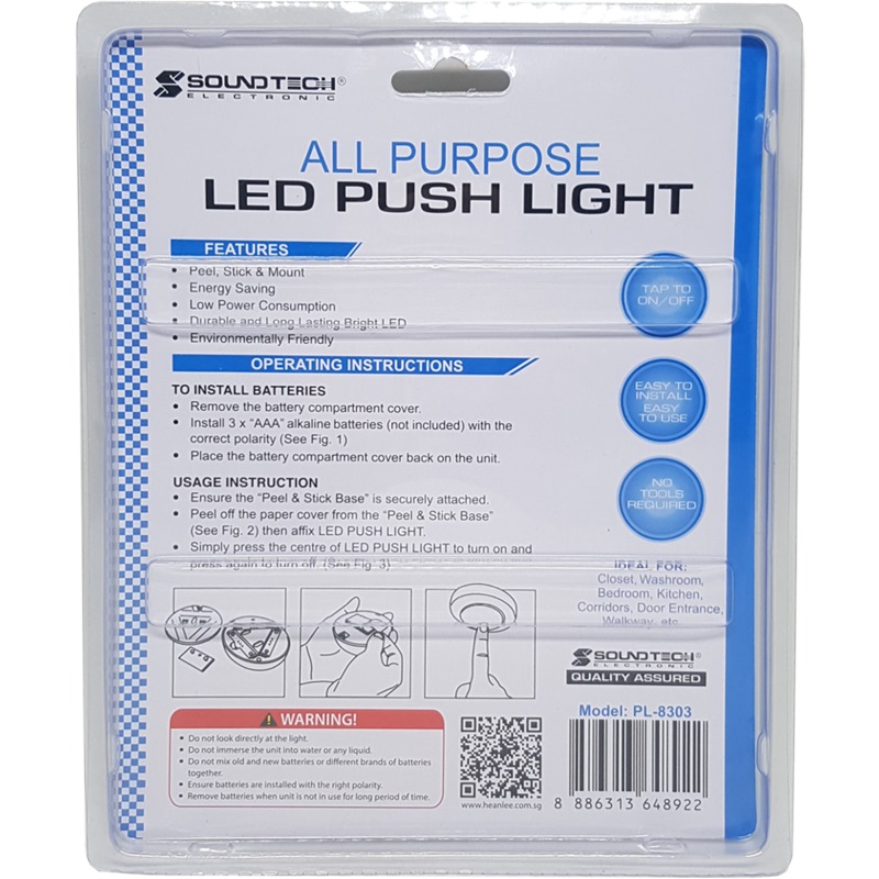 Home » Electrical & Lighting » Flashlights & Portable Lighting » SOUNDTECH LED PUSH LIGHT PL-8303