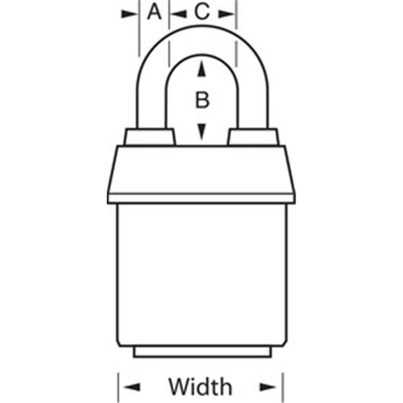 Shackle Dimension A: 5/16in (8mm) B: 2-1/2in (64mm) C: 7/8in (22mm)
