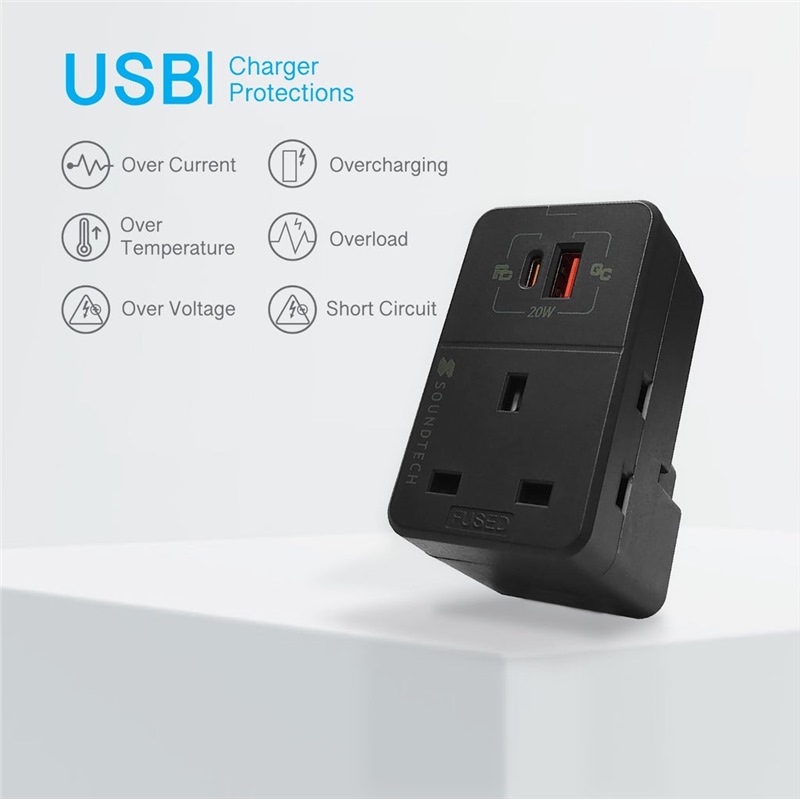 Home » Electrical & Lighting » Extension Cords & Travel Adaptors » SOUNDTECH 3 WAY ADAPTOR WITH USB CHARGER DARK GREY MAU-320/DG