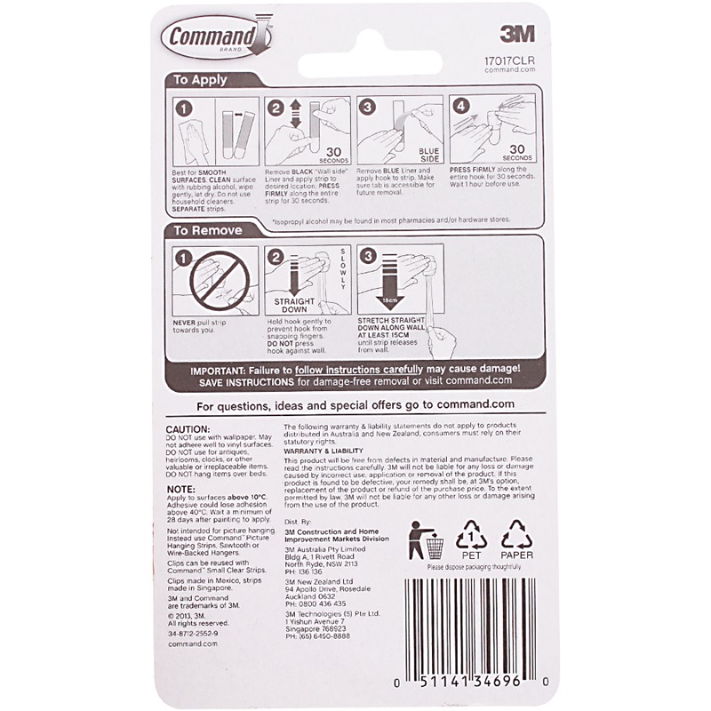 Home » Electrical & Lighting » Cable Management Products » 3M COMMAND CLEAR ROUND CORD CLIPS WITH STRIP 17017CLR