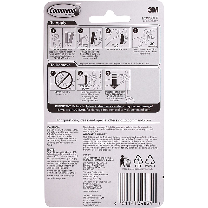 Command Small Clear hooks holds up to 450g - 2 clear hooks, 4 medium clear strips.