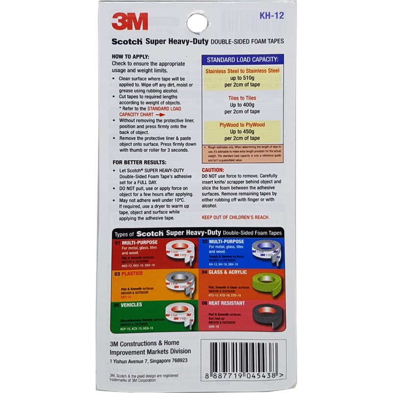 Home » Office & School Supplies » Adhesive & Packaging Tapes » 3M SCOTCH HEAVY DUTY DOUBLE SIDED FOAM TAPE KH-12 (ROUGH & UNEVEN) 12MMX1.5M