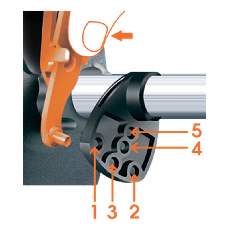 The new large-diameter turbine offers high performance even at low pressure, while the new watering selection device, comprising a pratical click-operated selector provides 5 different water settings.