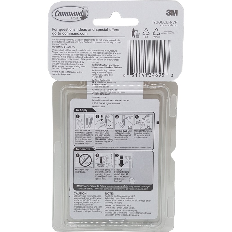 Home » Household Products » Home & Office Supplies » 3M COMMAND MINI CLEAR HOOKS VP 18HOOKS,24STRIPS - 17006CLRVP